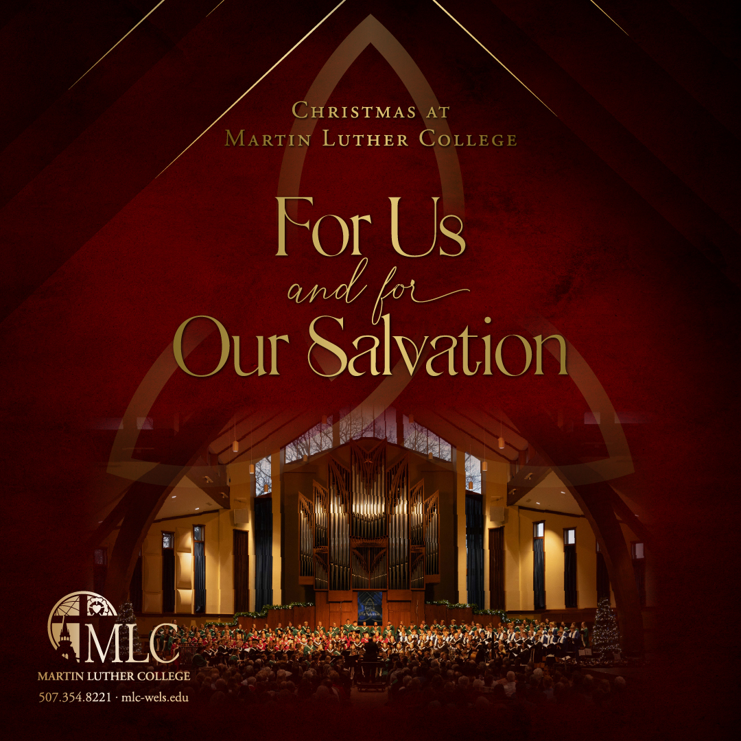Martin Luther College’s highly anticipated Christmas concert will be presented Saturday, December 13, at 7:30 pm and Sunday, December 14, at 4:00 pm in the MLC Chapel of the Christ. The combined choirs of Martin Luther College, the Wind Symphony, and the Hosanna Ringers invite you to join them for this musical celebration of the birth of Christ.