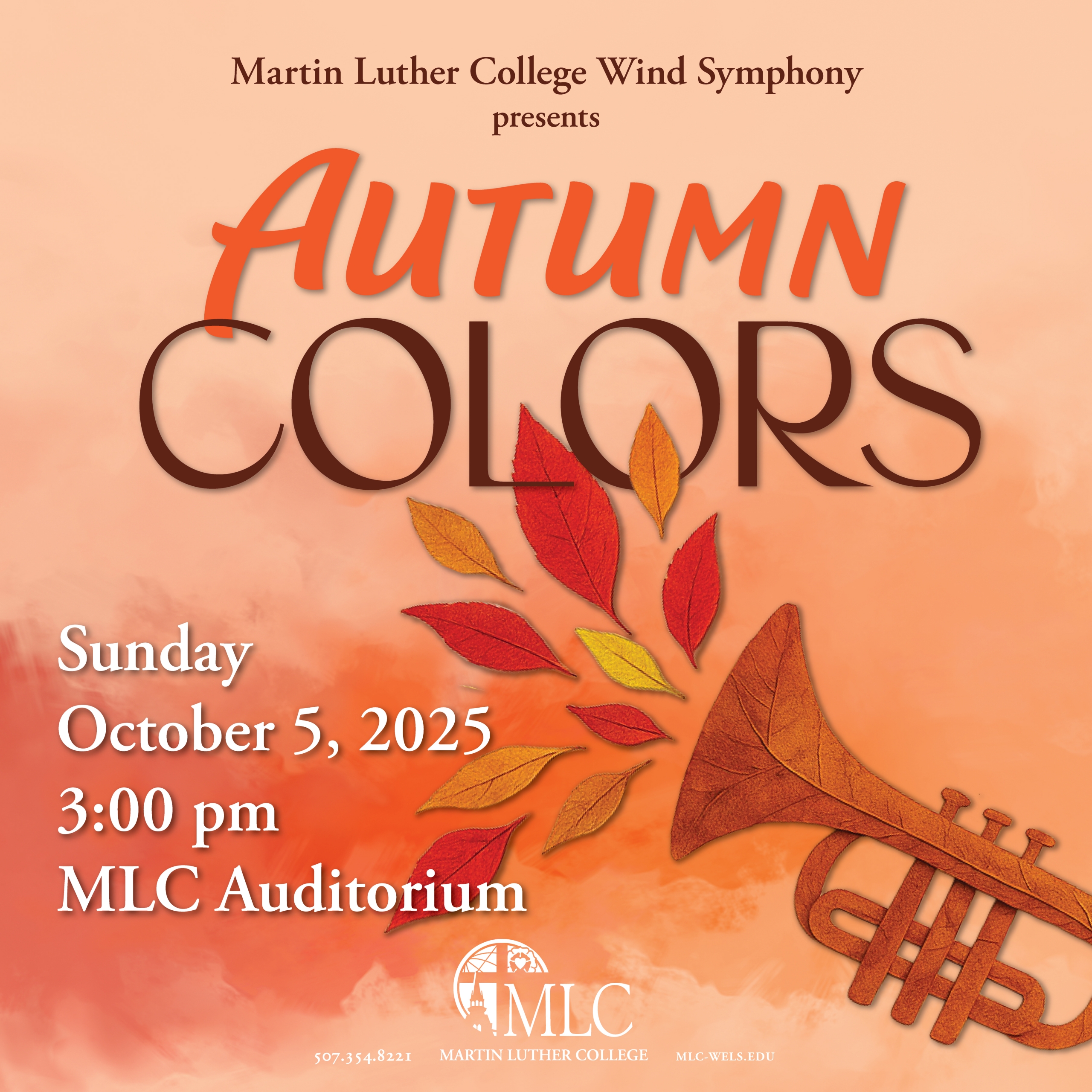 As summer gives way to fall, a tangible excitement is often in the air. A new school year, new friends, new experiences, the opportunity to start off fresh. Music ensembles are no exception. Each year brings a brand-new ensemble together—a mix of new and returning faces and the challenge of digging into new music. Please join the Martin Luther College Wind Symphony as they begin their new year of making music together with music inspired by the changing of the season. They’ll present Autumn Colors at 3:00 pm on Sunday, October 5, in the WCC Auditorium. The concert is free and open to the public. Can’t join us live? Check out the livestream of the concert on MLC’s YouTube page.