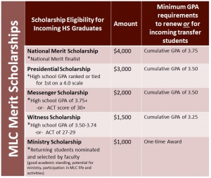 Students do not need to apply for MLC Merit Scholarships. These are awarded each year based on the GPA of each student.